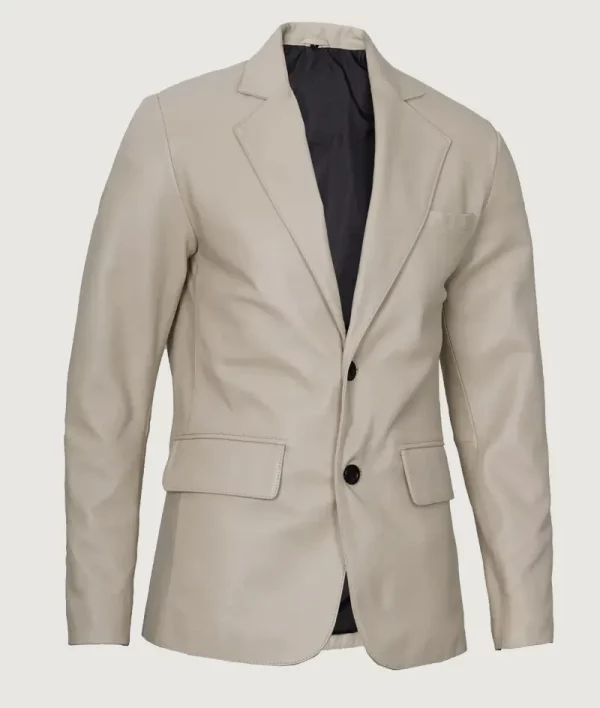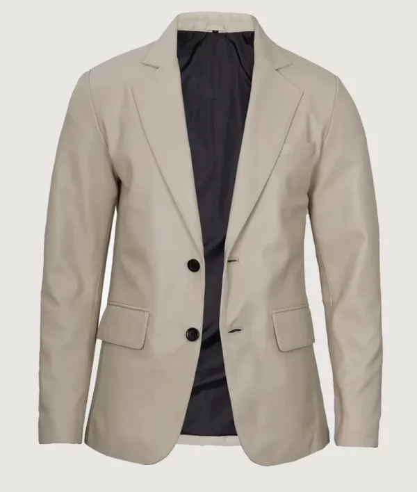Introducing our Men’s Two Button Beige Leather Blazer.