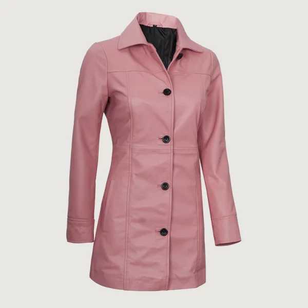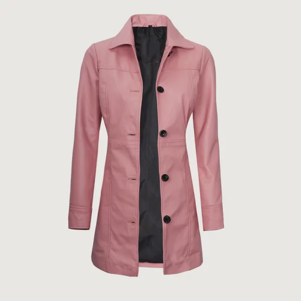 This women’s pink leather coat is the perfect blend of style and function. Made from real lambskin leather, this coat is both durable and soft to the touch. The pink color of the coat adds a touch of elegance to the overall look and makes it stand out from other coats. A must have outerwear to stay in trending fashion.