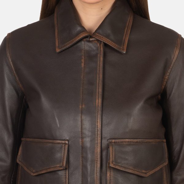 Women’s Westa Brown Leather Bomber Jacket Close Front ATLB3